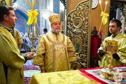 On September 22, 2024, on the 13th Sunday after Pentecost, Metropolitan Symeon of Vinnytsia and Bar celebrated the Divine Liturgy at the Transfiguration Cathedral in Vinnytsia. His Eminence was concelebrated by Archpriest Vitaliy Goloskevych, Archimandrite Sofroniy (Chupryna), Archpriest John Drozd, Archpriest Vasyl Korovai, Archdeacon Vladyslav Demchenko and Archdeacon Serhiy Boyarsky. During the service, a prayer was offered for Ukraine's victory over the Russian occupiers.