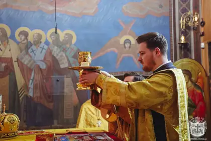 On February 16, 2025, on the Sunday of the Prodigal Son, Metropolitan Symeon of Vinnytsia and Bar celebrated the early Divine Liturgy at the Transfiguration Cathedral in Vinnytsia. His Eminence was concelebrated by Archpriest Vitaliy Goloskevych, Archpriest John Drozd, Protodeacon Serhiy Boyarsky, and Deacon Volodymyr Andrienko. During the service, a prayer was offered for Ukraine's victory over the Russian aggressor.