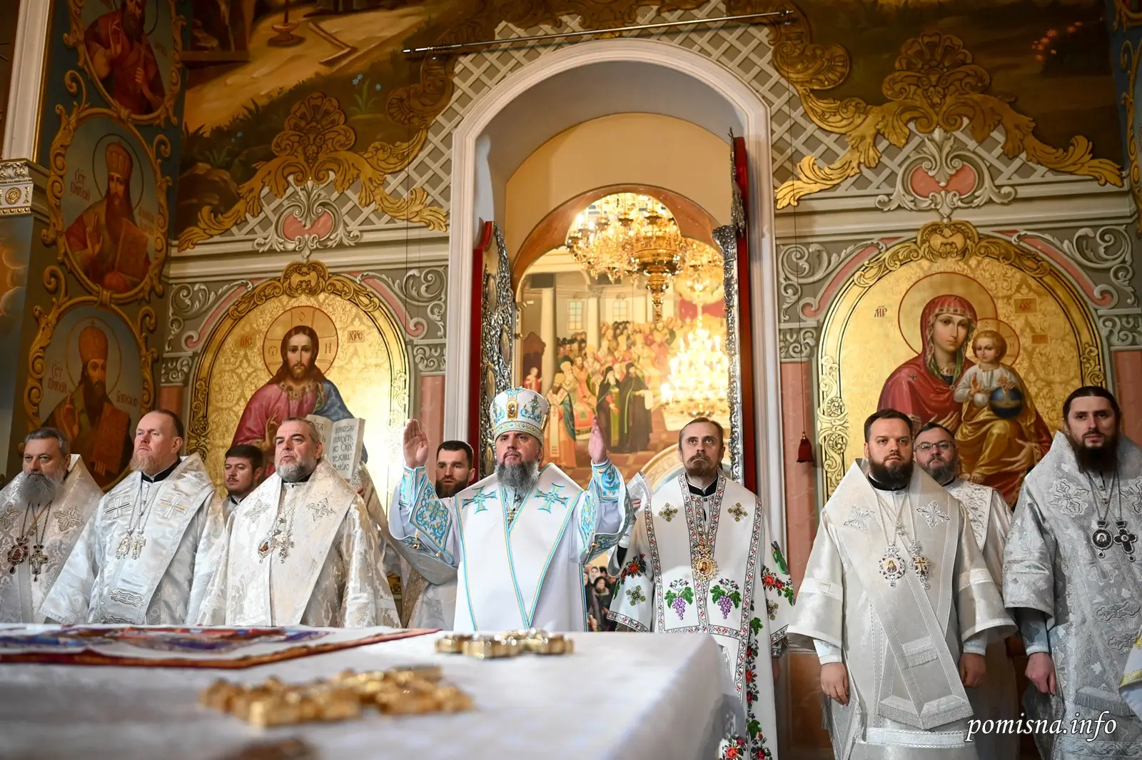Предстоятелю автокефальної Української Православної Церкви співслужили  митрополит Вінницький і Барський Симеон, архієпископ Чернігівський і Ніжинський Євстратій, архієпископ Тернопільський і Кременецький Нестор, архієпископ Вишгородський Агапіт, єпископ Кропивницький і Голованівський Марк, єпископ Луганський і Старобільський Лаврентій та запрошене духовенство.