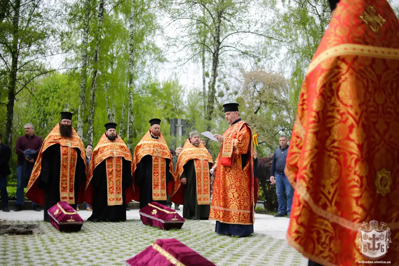 Митрополит Симеон звернувся до присутніх на церемонії перепоховання і зазначив, що сьогодні після завершення відповідних пошукових робіт і інших підготовчих робіт, відбулася заупокійна молитва за тих, хто визволяв наше місто і за всіх, хто багато років був похований у самому центрі Вінниці.