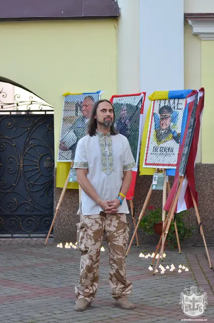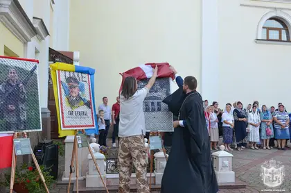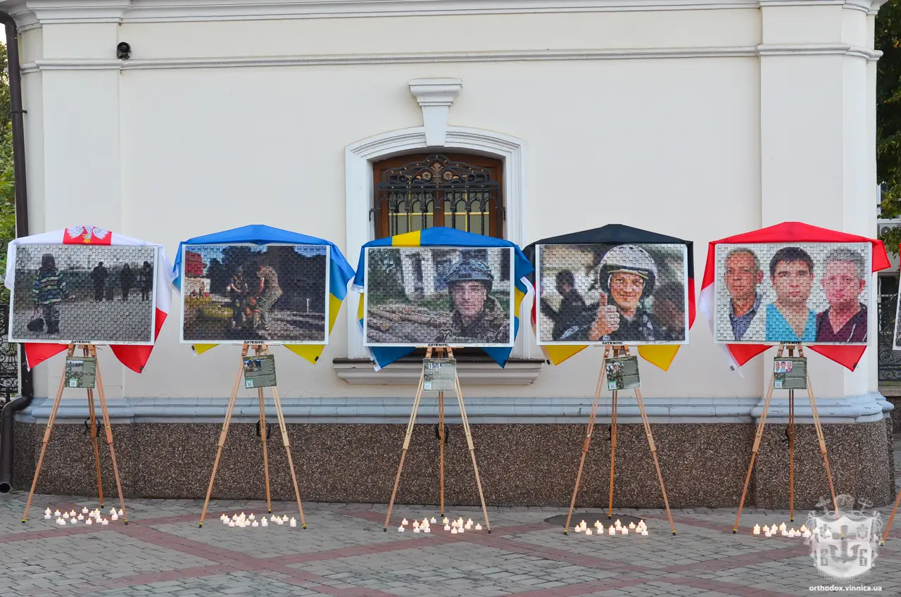 На картинах, які були виставлені на території Преображенського собору, поруч із пам’ятними дошками, на яких викарбувані імена загиблих вінничан, можна було побачити, зокрема, Катерину Поліщук - «Пташку» з «Азовсталі», Олександра Мацієвського – воїна, який був розстріляний окупантами за слова: «Слава Україні», головнокомандувача Збройних Сил України Валерія Залужного та інших героїв України.