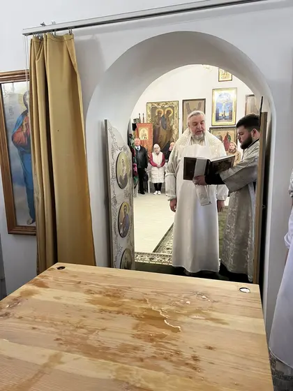 Після освячення храму  архієреї та духовенство звершили у ньому першу Божественну літургію, під час якої були піднесені молитви за Україну під нашестя чужинців, за захисників Батьківщини, а також за керівників, викладачів та студентів інституту.